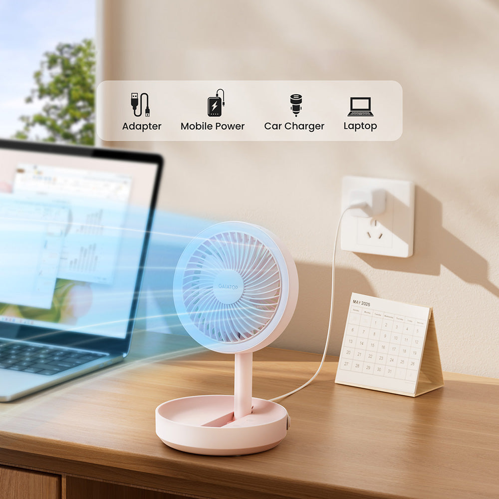 I love how light weight this fan is. It charges fairly quickly, and is easy to use. I use it when I'm hot and also during my makeup application. I really like the flashlight feature also. I purchased these as items to put in Thank You gift bags for my birthday trip. Very quiet, but great performance of cooling me off in the heat!!