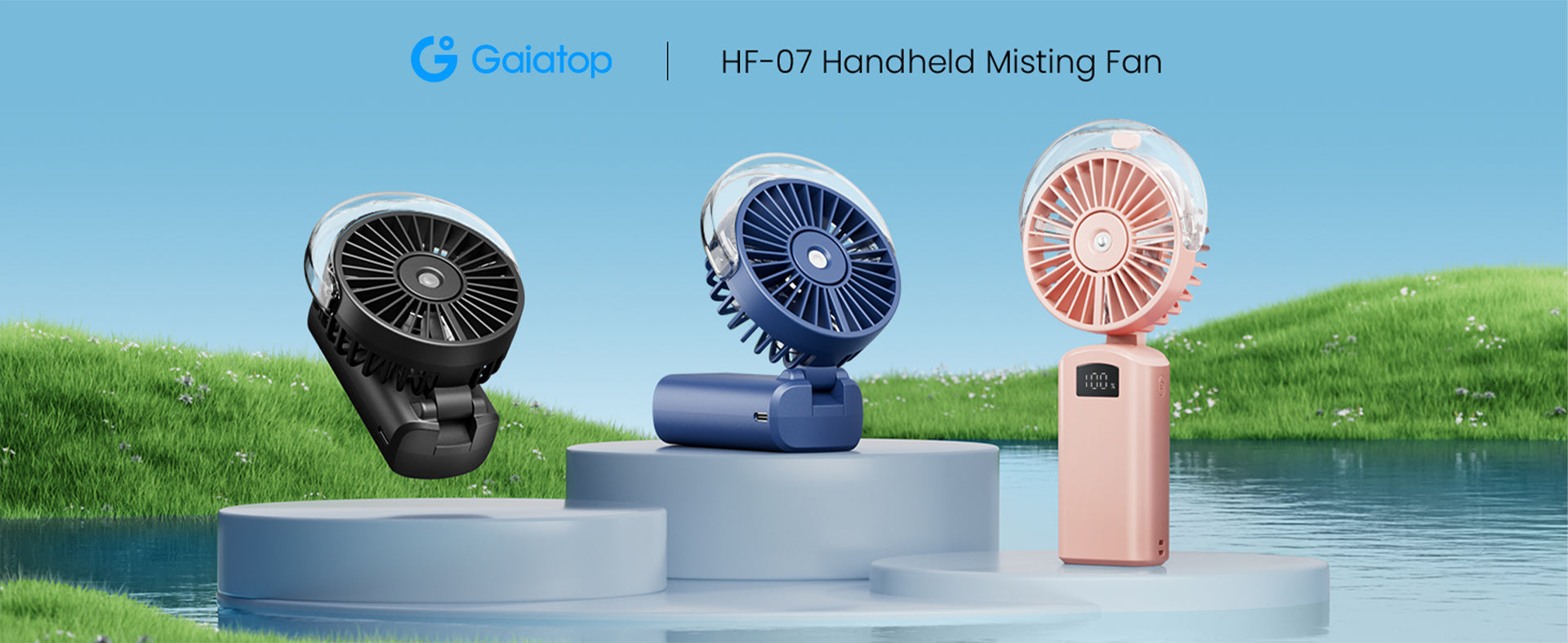 Gaiatop Portable Foldable Mist Fan With Digital Display 3-Speed USB Rechargeable Handheld & Desk Use HF-07
