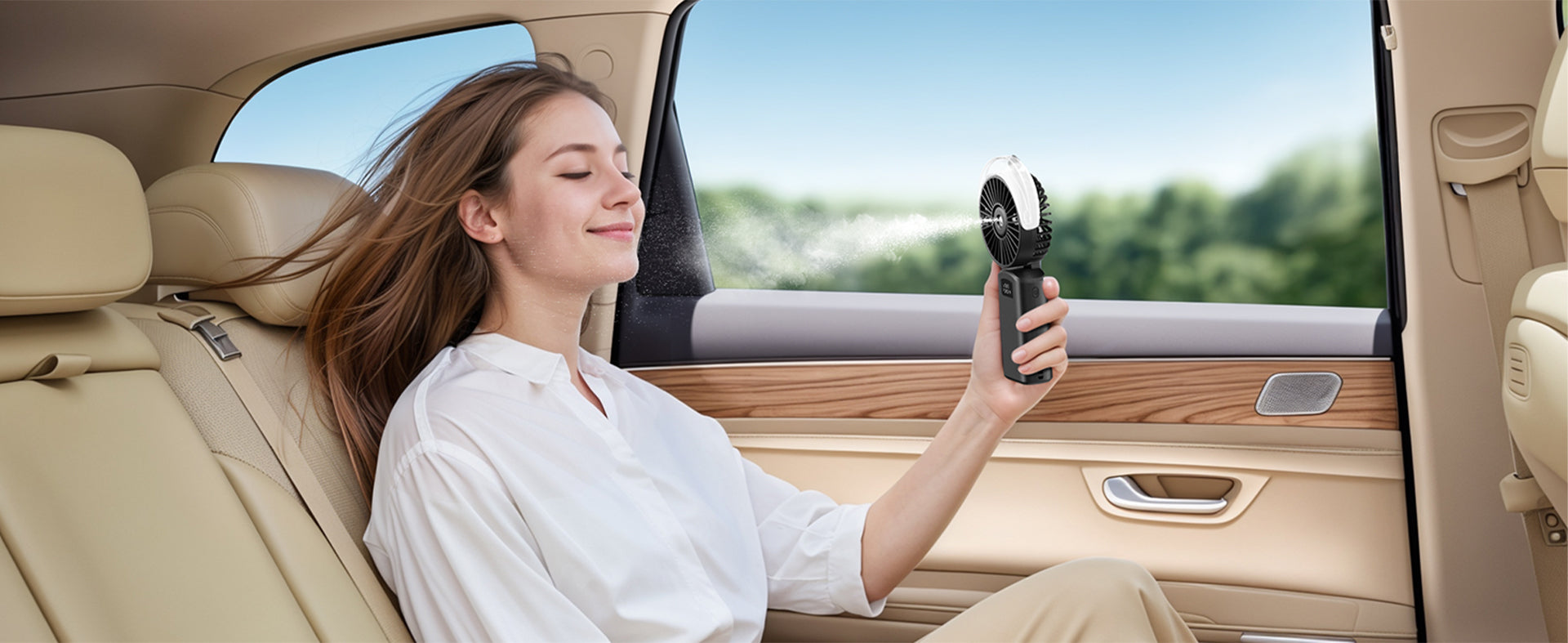 - Compact Foldable Design for Easy Portability — This misting fan features a smart foldable structure (folded size: 110 x 83 x 62 mm) for effortless storage and transport. Use it as a handheld fan or unfold it for stable desktop cooling, perfect for travel, work, or home use.