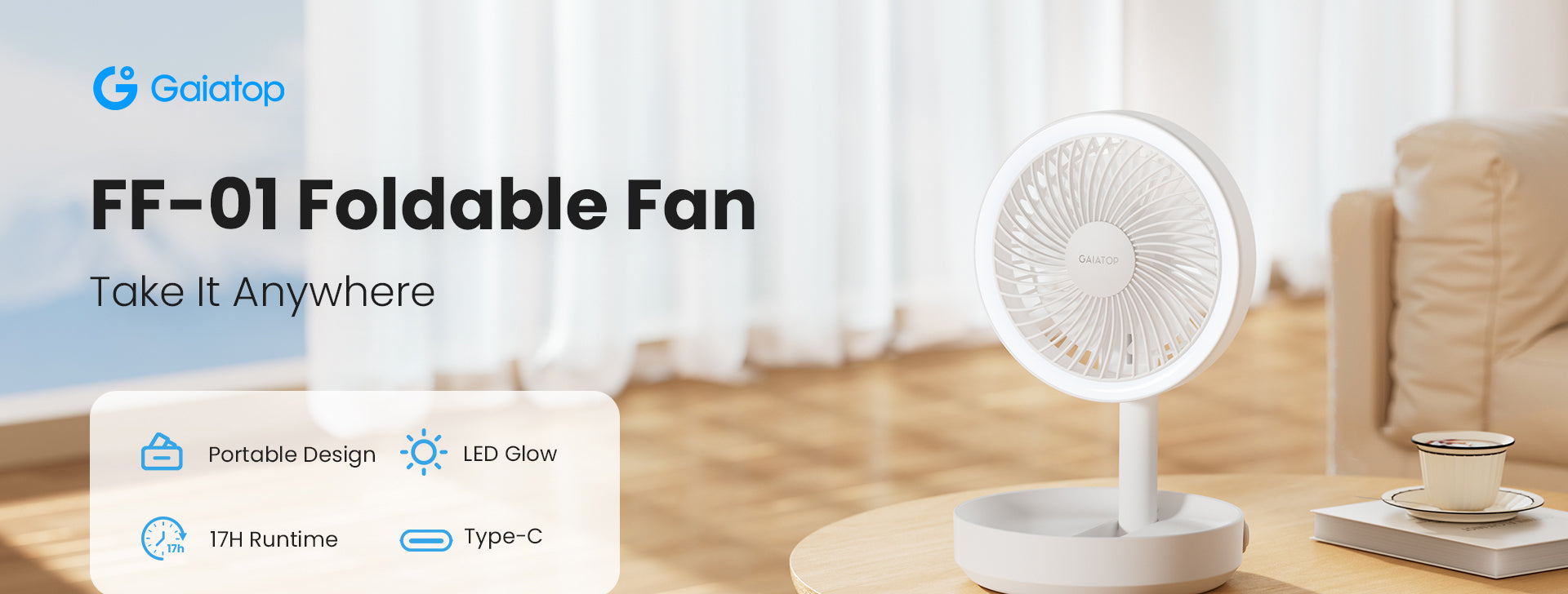Gaiatop Foldable Rechargeable Table Fan with LED Light FF-01