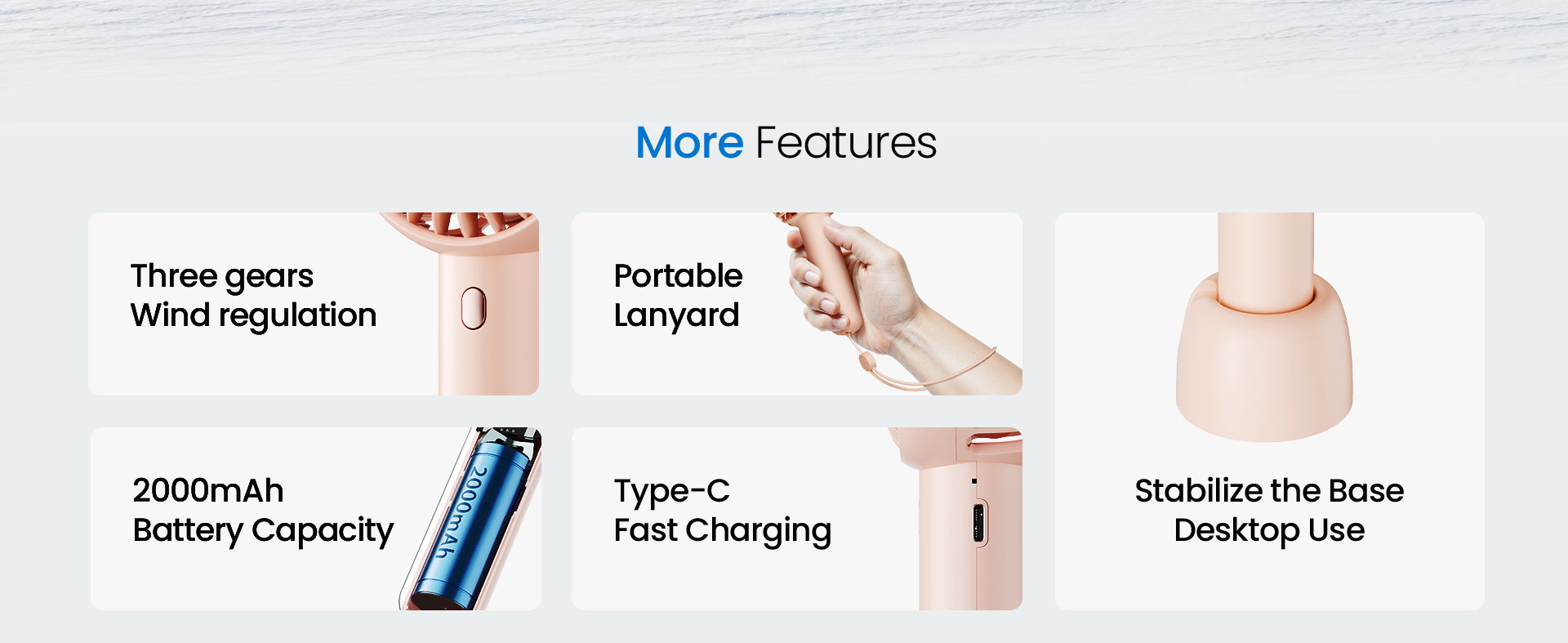 - Type-C all-in-one charging + handheld / desktop dual mode — Universal Type-C interface and cell phone sharing charging cable, with a multifunctional base turns into a desktop fan in seconds, office, fitness, cooking scenarios are free to switch, freeing up the hands of a machine for multiple uses.