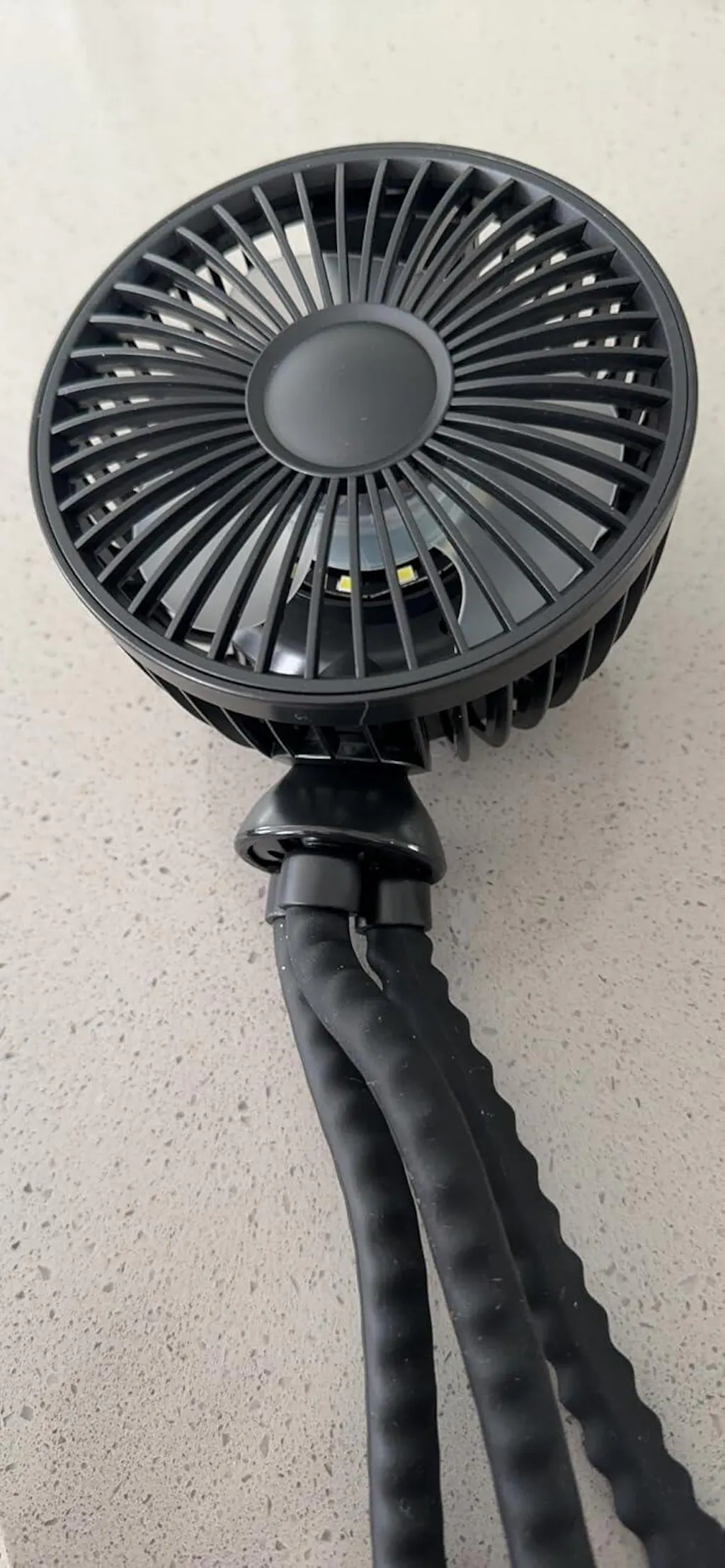 - Upgraded Flexible Durable Tripod — Shell made of food-grade silicone, safe for the baby; Optimized the tripod fixing method, which is more durable and not easy to fall off; You can remove the fan head to charge at will, no need to repeated fixation