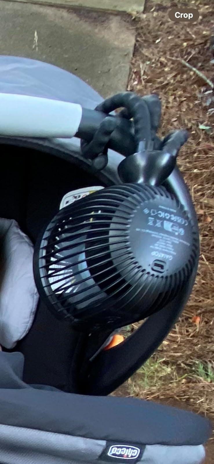 - Upgraded Flexible Durable Tripod — Shell made of food-grade silicone, safe for the baby; Optimized the tripod fixing method, which is more durable and not easy to fall off; You can remove the fan head to charge at will, no need to repeated fixation