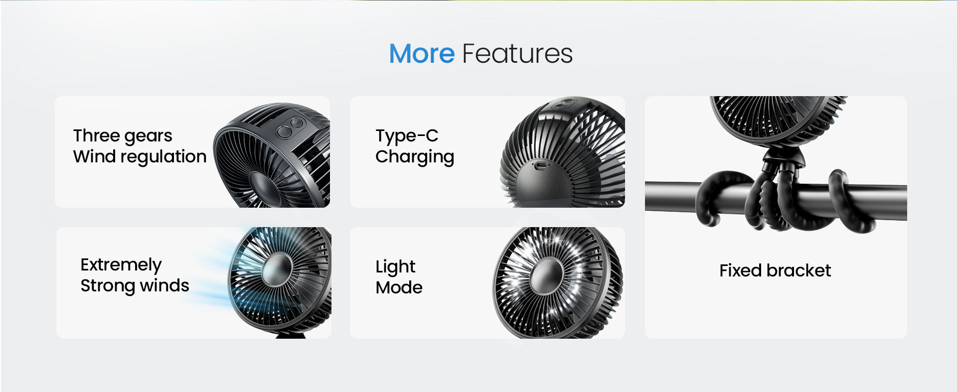 - Safe Design for Baby — The mini stroller fan's cover only has 5.5mm gaps, so it will protect the infant's little fingers from entering; While keeping toddlers safe, our fans work quietly and provide powerful wind
