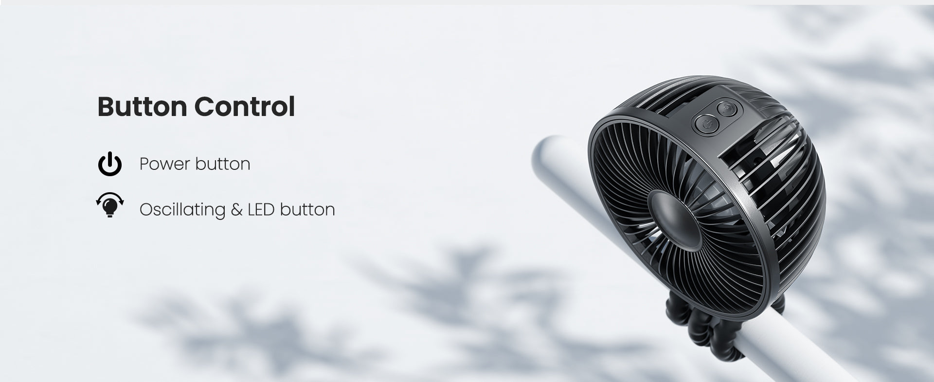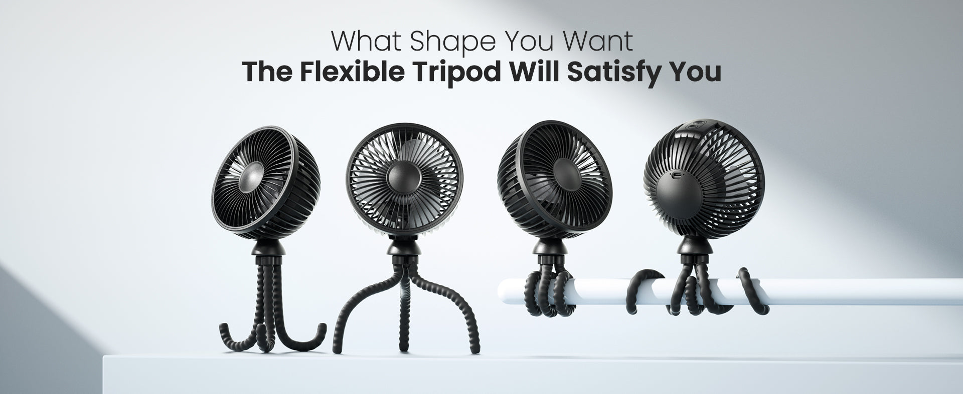 - Upgraded Flexible Durable Tripod — Shell made of food-grade silicone, safe for the baby; Optimized the tripod fixing method, which is more durable and not easy to fall off; You can remove the fan head to charge at will, no need to repeated fixation