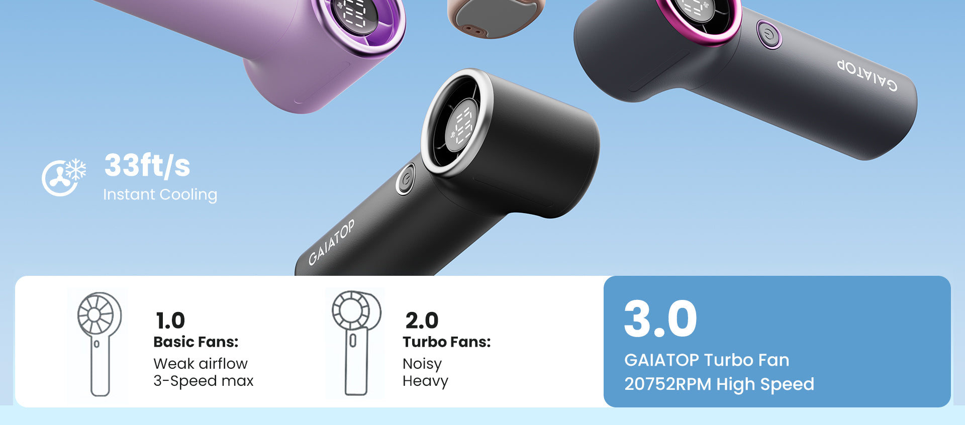 Gaiatop Next-Gen Turbo Mini Fan – Ultra-Compact, High-Speed Cooling with Adjustable Wind Speed HF-20