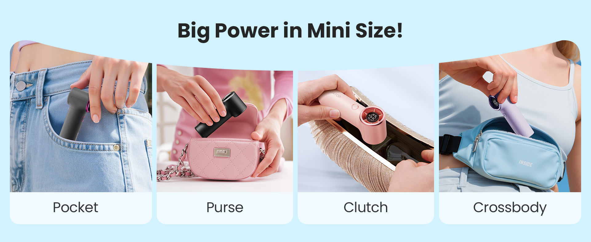 - Super Mini & Portable — Weighing only 3.9oz (112g) and measuring just 4.5 inches tall, this ultra-compact fan easily fits in your purse, making it perfect for on-the-go cooling.