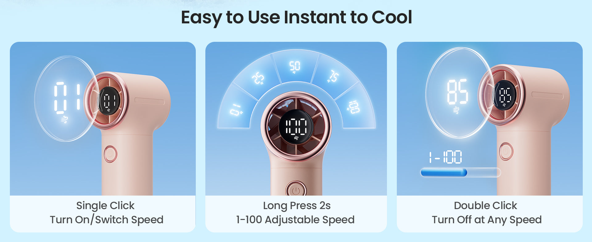 - Adjustable Wind Speed — Customize your cooling experience with speeds from 1 to 100, with a maximum cooling time of 15 hours on the lowest setting, ensuring long-lasting comfort.
