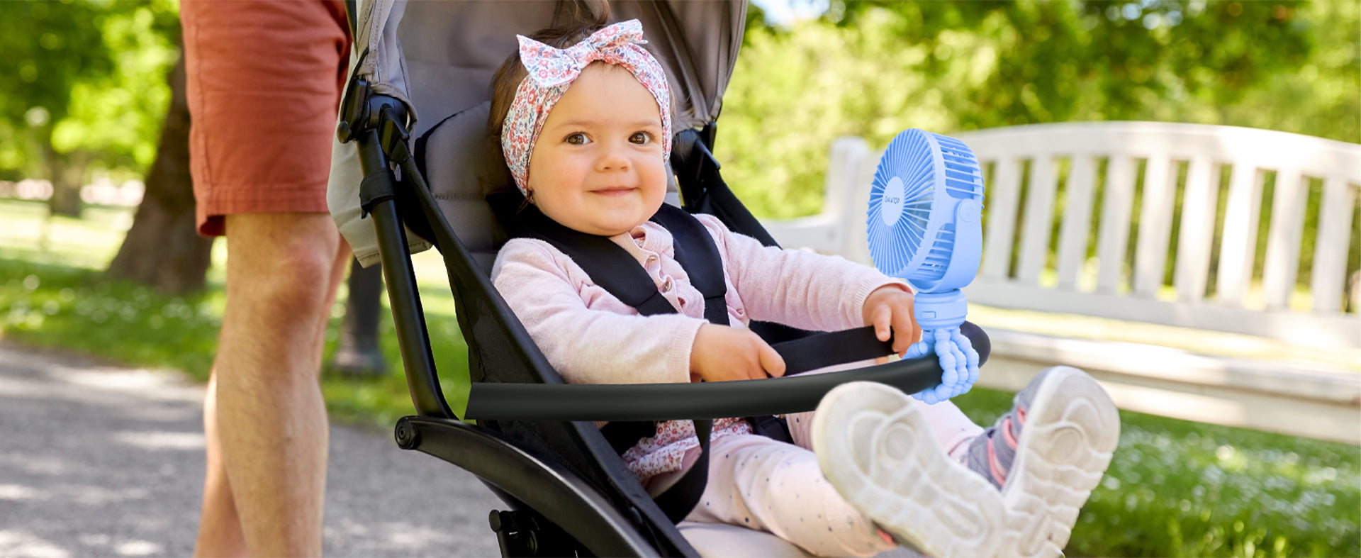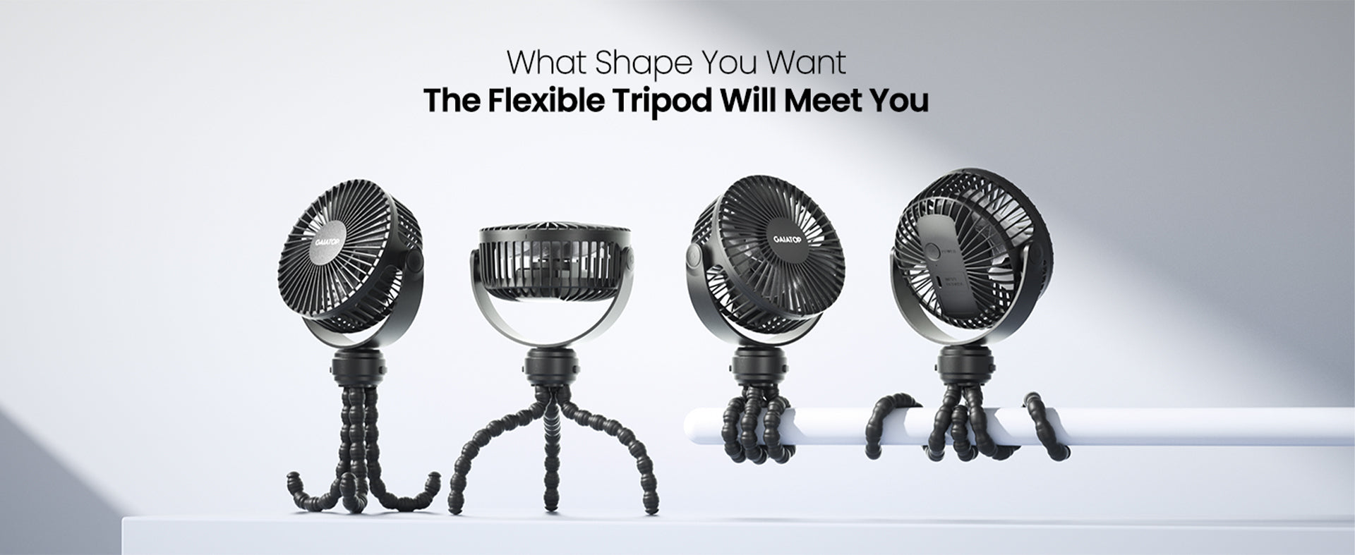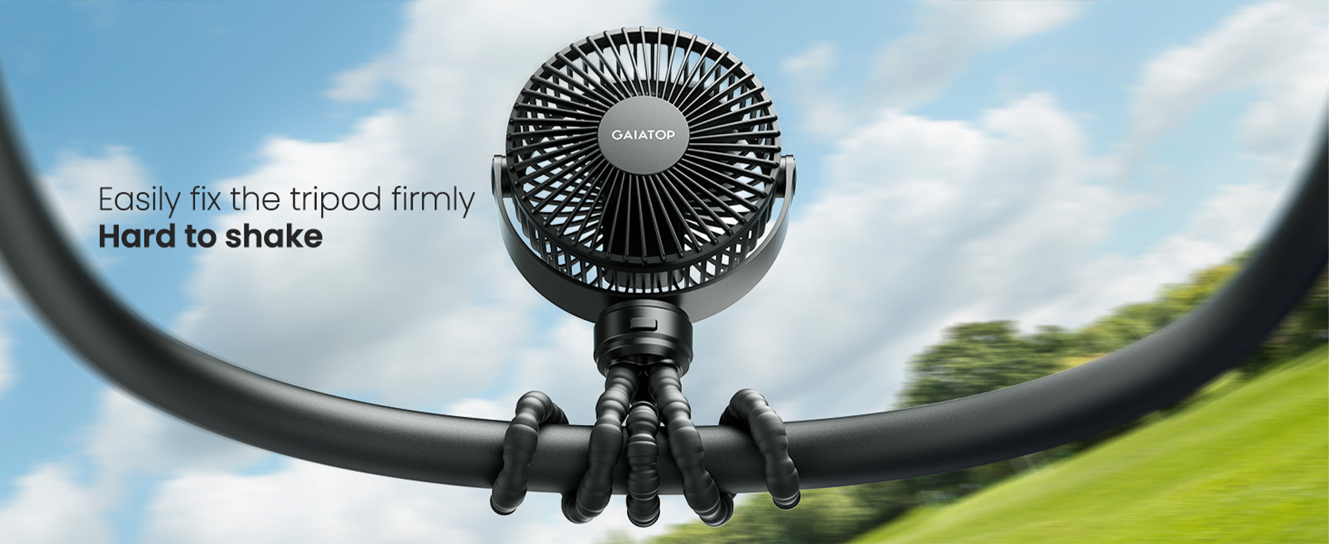 - Flexible 360° Tripod & Adjustable Head — This versatile fan features a bendable octopus-style silicone tripod and a fan head that tilts up to 210°, allowing you to wrap it around stroller handles, car seats, or place it on a desk for targeted cooling from any angle.