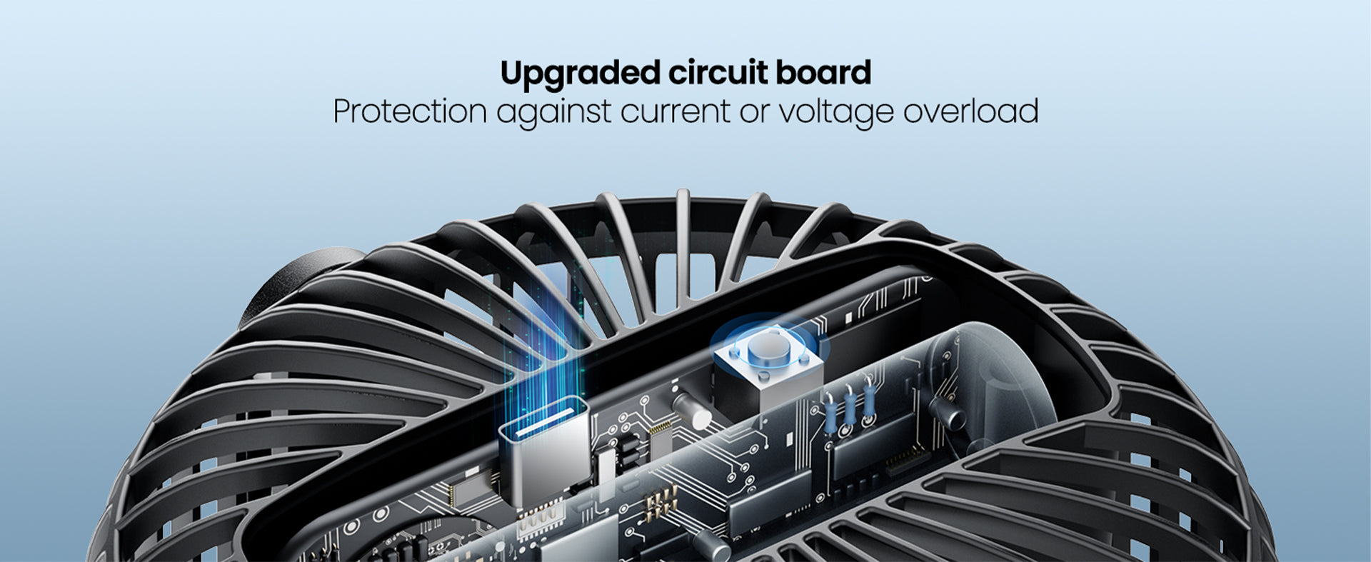 - USB-C Charging & Smart Indicators — The fan charges via a USB Type-C port (1-meter cable included), with a smart LED indicator: blue when running, red when charging, and turns off when fully charged. Enjoy convenient, reliable cooling wherever you are.