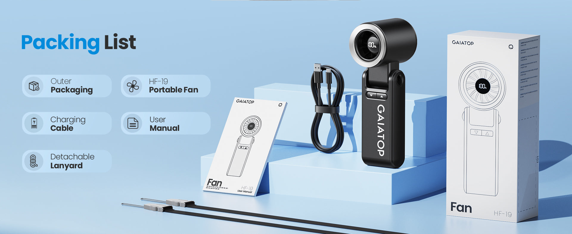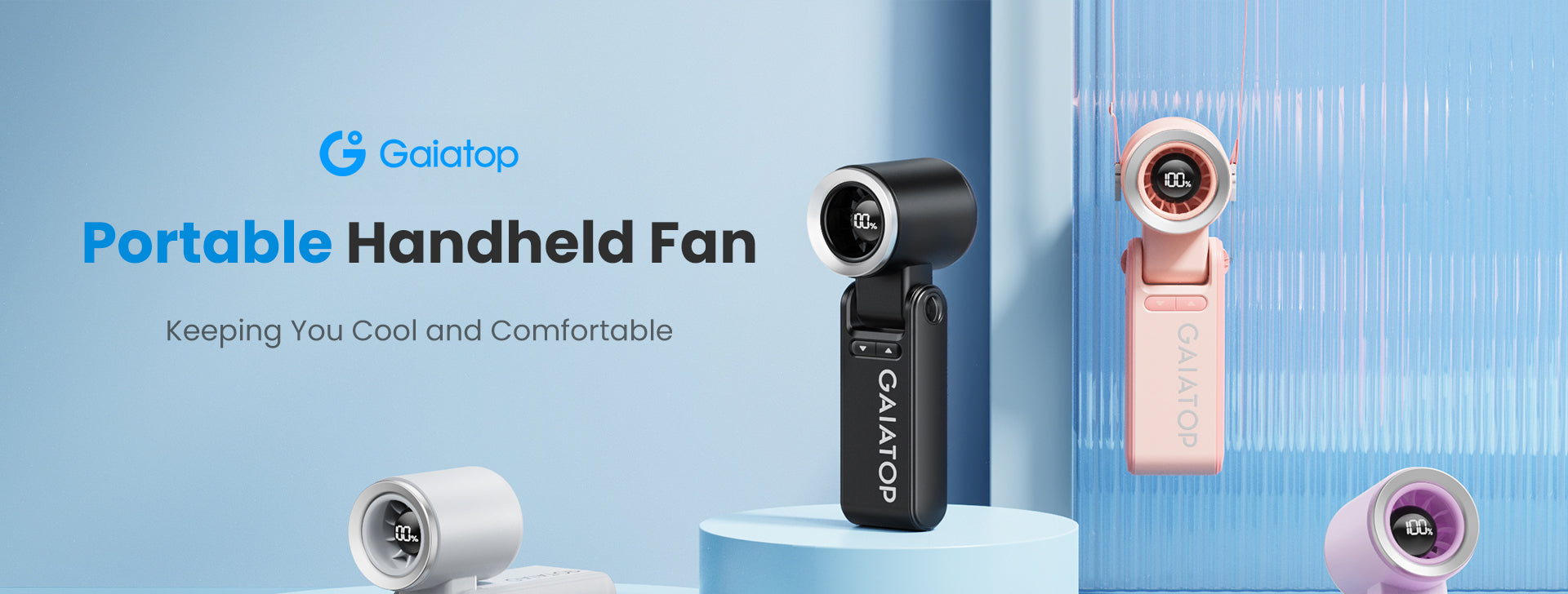 Gaiatop Portable 3-in-1 Handheld Neck Desk Fan with LED Display and Long Battery Life HF-19