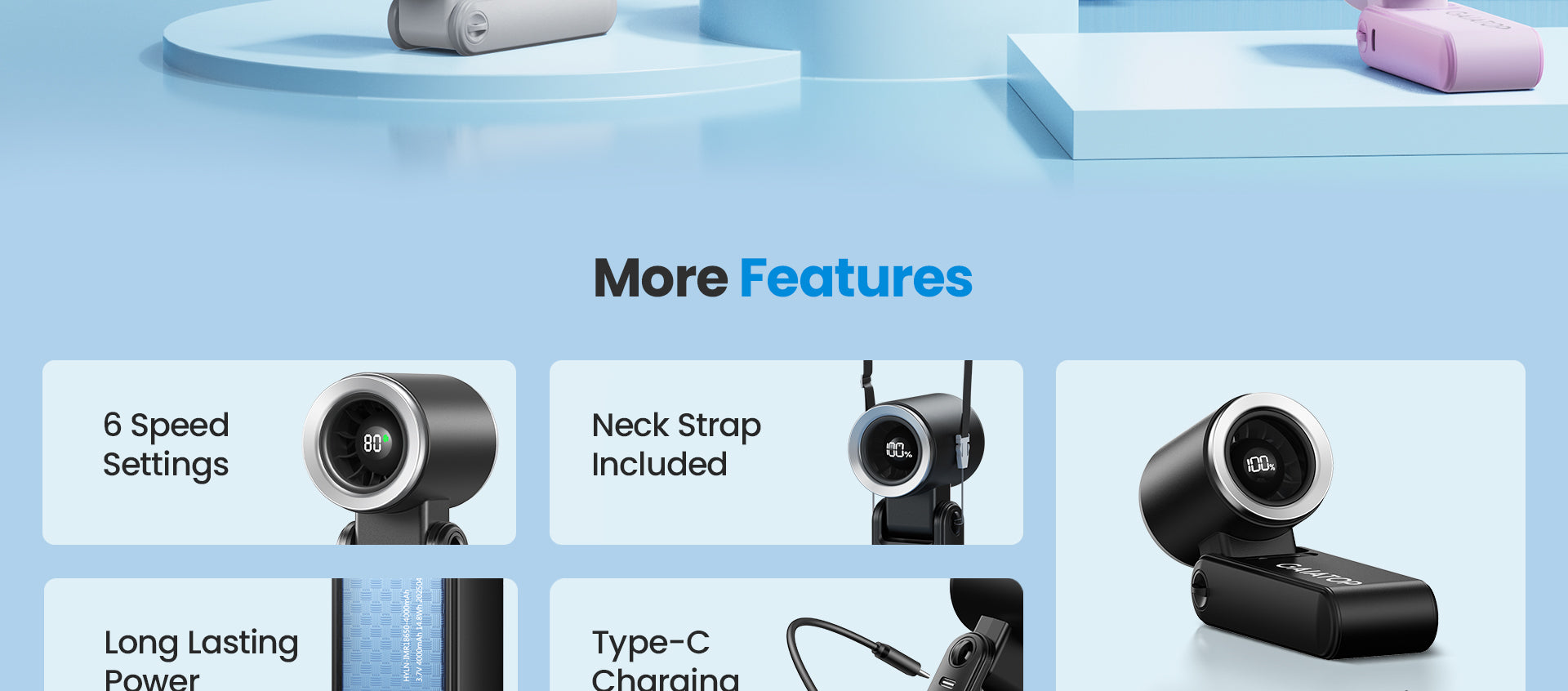- Long Battery Life — Offers up to 21 hours of cooling time on low speed, ensuring you stay refreshed for hours without constant recharging.