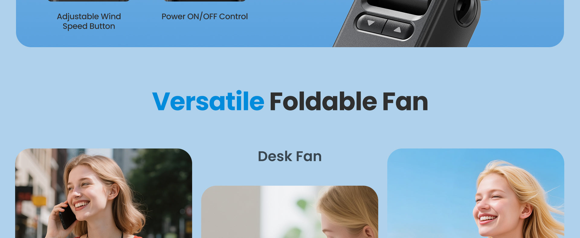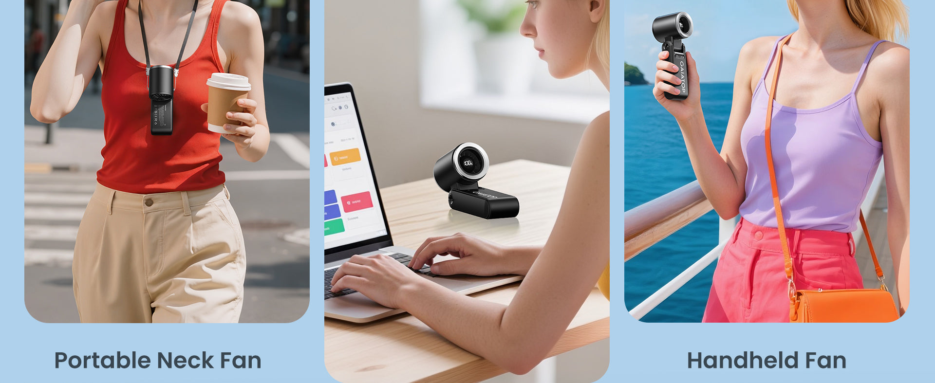- 3-in-1 Versatility — Can be used as a handheld fan, neck fan, or desk fan, making it perfect for on-the-go cooling and versatile usage in different situations.