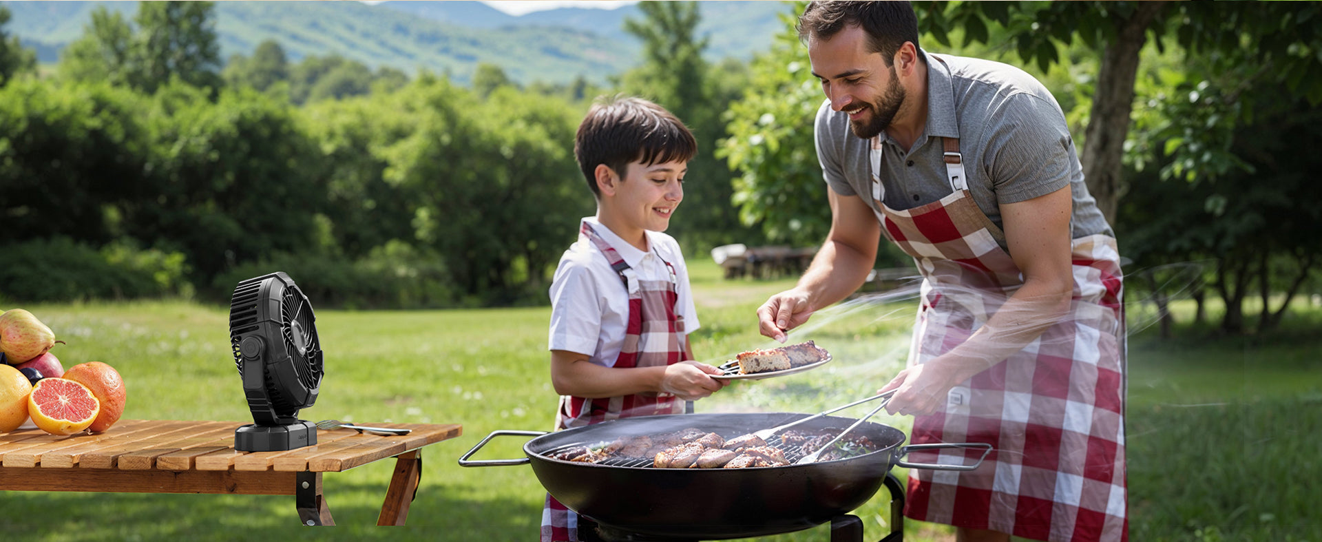 - Powerful and Ultra Quiet — The outdoor fan is composed of an upgraded motor and an aerodynamic inlet/outlet grille, which reduces air resistance and makes the wind stronger with lower noise; The perfect personal fan for sleeping and working