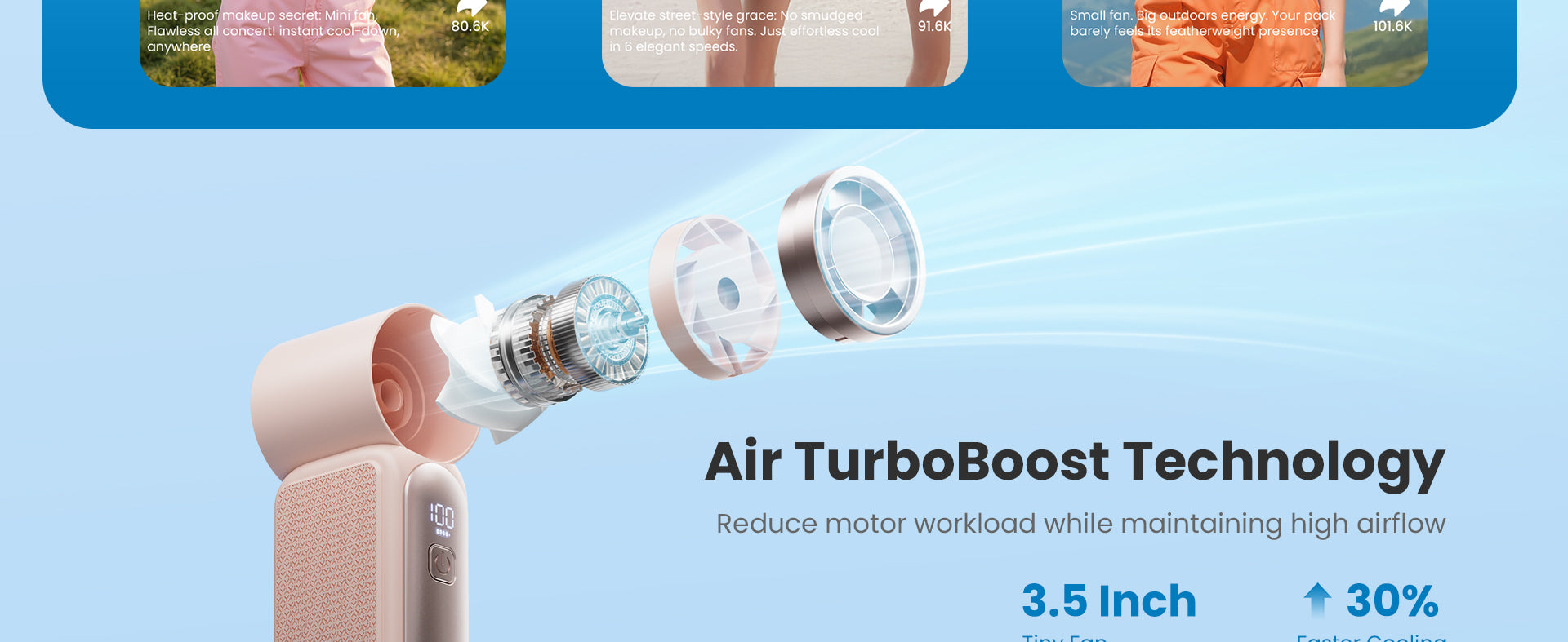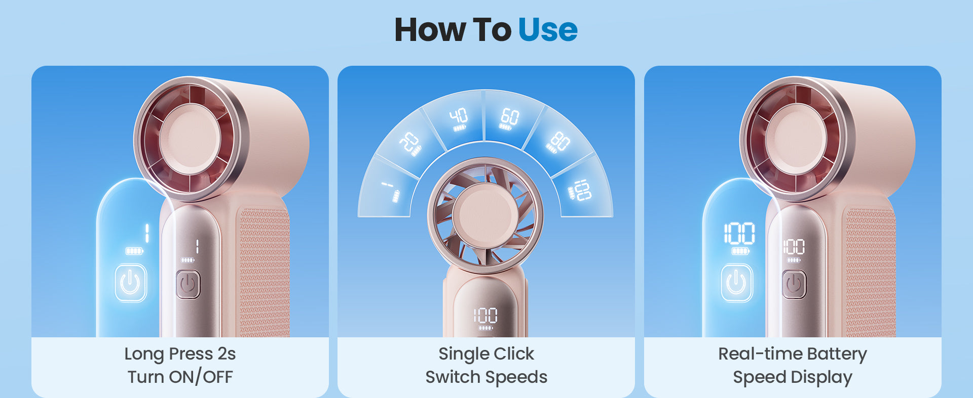- Smart LED Display — Stay informed with the real-time battery level and wind speed indicators on the clear LED display, keeping you in control of your cooling experience.