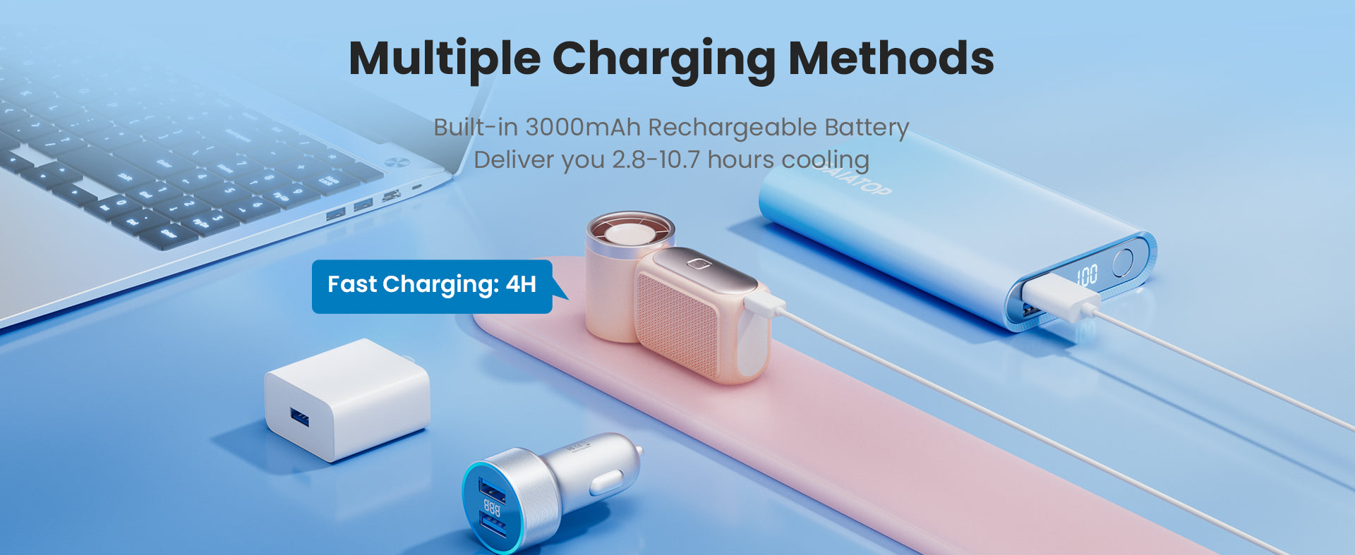 - Long-Lasting Battery — Enjoy up to 10.7 hours of cooling power with the rechargeable battery, providing extended use for a variety of outdoor activities and daily trips.