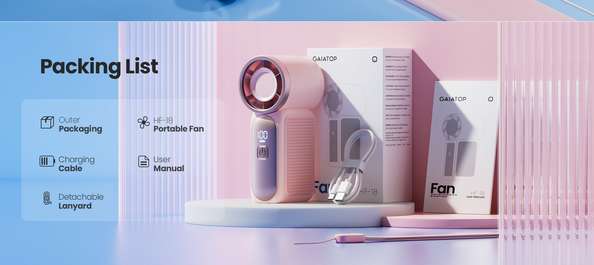 Gaiatop Ultra-Compact Turbo Handheld Fan with LED Display - Pocket-Sized, High-Speed Cooling HF-18