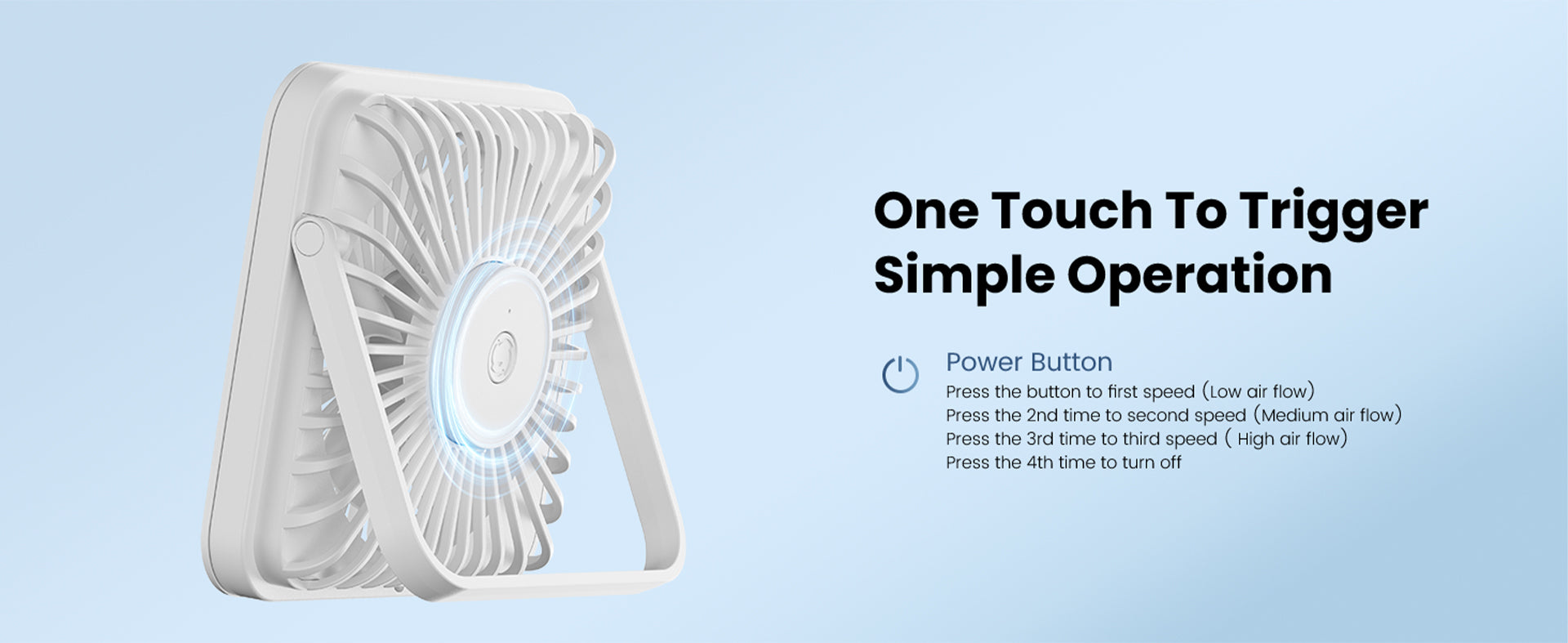 - Three Wind Speeds, Fully Adjustable — Whether you prefer a gentle breeze or a powerful gust, the DF-01 meets your needs. With wind speeds ranging from 3.7m/s to 5.0m/s, you can easily adjust between three settings to find the most comfortable airflow for any environment.