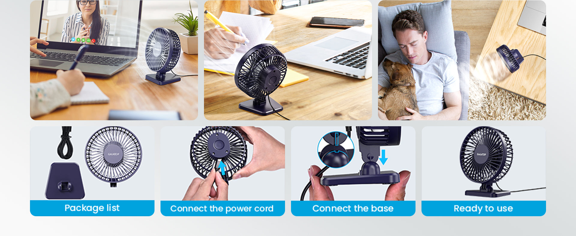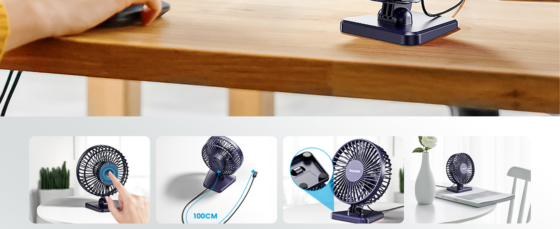 - USB Powered & Energy Efficient — Designed for continuous use via USB power, this fan operates without batteries, making it a reliable cooling solution for your desk, bedroom, or any indoor space.